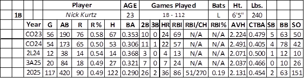 Kurtz opened 2025 at AAA (.321 with 18 runs, seven home runs, and 24 RBIs over 84 at-bats) before getting called up in the fourth week of April. Major league arms dominated him over his first 25 games (.233/9/4/10), highlighted by his high strikeout rate (35.1%). An oblique issue pushed him to the sidelines for 15 days in late May.
