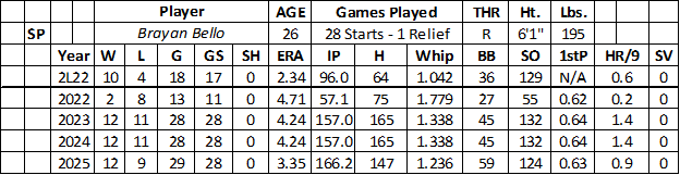 Fantasy Outlook: The Red Sox have plenty of pitching depth heading into 2026. Bello has lost his luster in the fantasy market after failing to approach his top season at AA and AAA in 2022 (10-4 with 2.34 ERA, 1.042 WHIP, and 129 strikeouts over 96.0 innings).