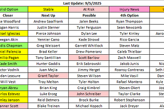 Each week, I’ll update the bullpen depth chart on Friday unless I have a schedule change for some reason.