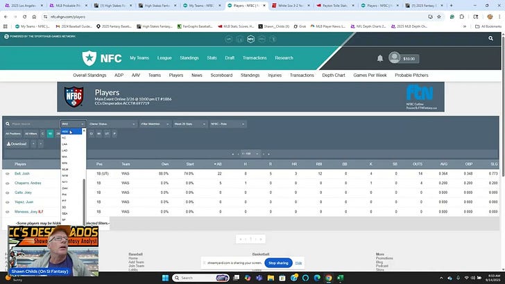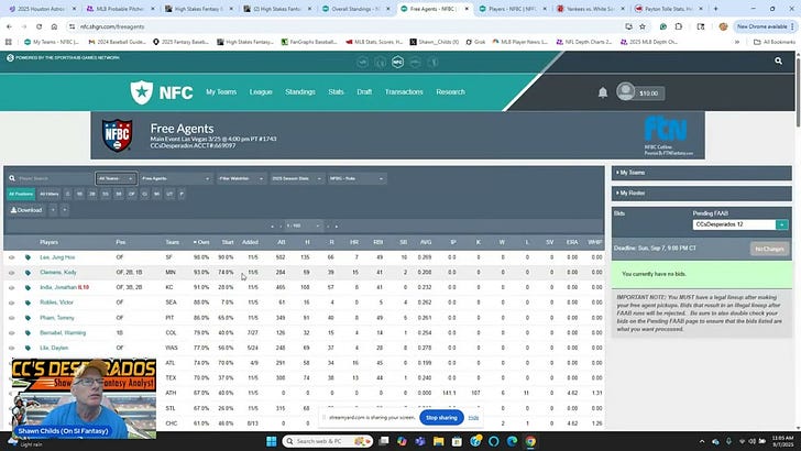 2025 NFBC Main Event Free Agent Report (9/7)